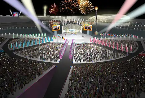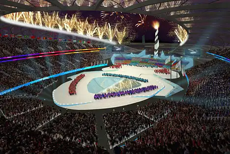 Стадион, где будет проходить открытие и закрытие Олимпиады, экстерьер.