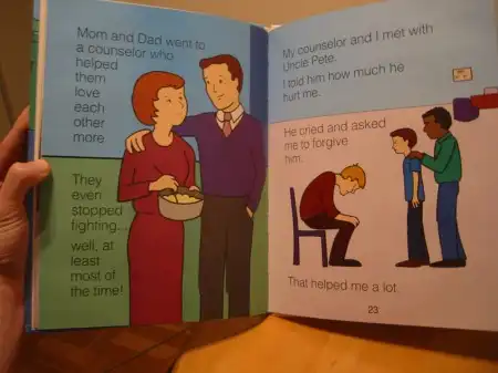 А мы с психологом пришли к дяде Пете. Я сказал ему - как он меня ранил. Он заплакал и попросил простить его. Это мне очень помогло.