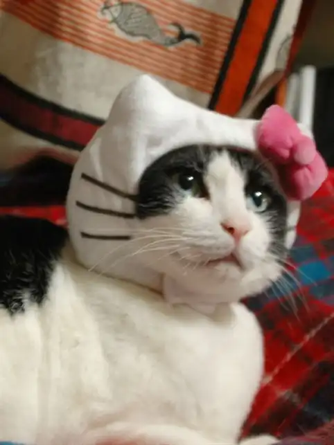 то это? Ну простой набор "одежды" для вашего любимого кошака. Но японцы назвали сей набор иначе - "Hello Kitty Cat Humiliation System", что в переводе звучит как "Система унижения кота Hello Kitty". Действительно, кот одетый в такой наряд выглядит очень униженно