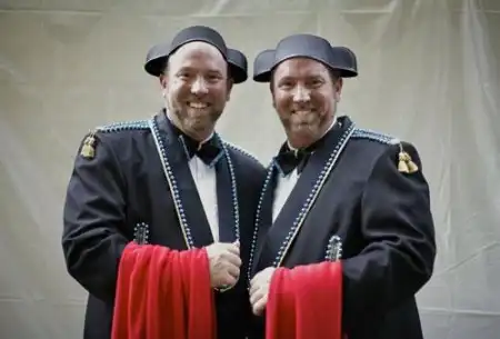 Стив и Джеф Нагел из Дэйтона, штат Огайо, позируют в перед конкурсом лучшего специального костюма, в котором они намерены принять участие в качестве матадоров...