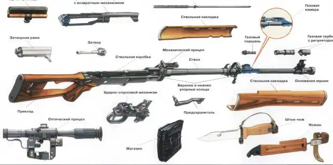 Винтовка СВД представляет собой самозарядное оружие с газоотводной автоматикой