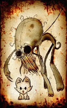 Забавный монстрик из шкафа любит кушать маленьких смешных кошечек.