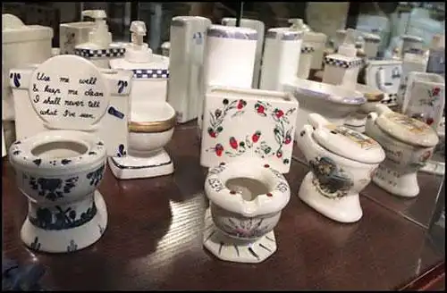 В музее представлены деревянная тюремная параша, английский викторианский ватерклозет второй половины XIX века, немецкое портативное керамическое биде первой половины XIX века, викторианская ночная ваза второй половины XIX века…