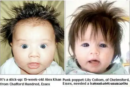 Вот с таким интересным причесоном родился этот малыш. Причём, утверждают, что это вовсе не начёс и не средства для укладки. У него, действительно, так растут волосы. Далее несколько фото детишек, которым повезло родиться со стильными причёсками.