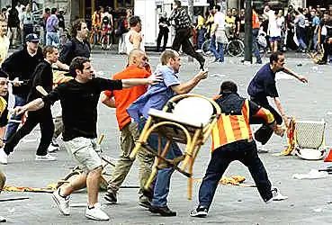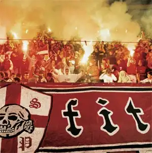 Ныне противостояние обрело иные формы. Последним убитым стал Фальке, один из "Гробарей", заколотый ножом в 2001 году в очередной битве при заново отстроенном баре "Сербия". Это, конечно, война, но в первую очередь - война транспарантов. "Юги" выбрали итальянскую модель боления, характеризующуюся красочными баннерами, срыванием вражеских лейблов и романтической дымкой сигнальных ракет. Но фирмачи еще помнят войны, боль и ненависть. Чтобы воспроизвести в памяти события тех лет, нужно немного. Пройтись по Аутокоманде и взглянуть на битые бордюры тротуаров, на места, где рекой лилась кровь... Взглянуть на новые кресла стадиона "Маракана", лишь недавно заменившие обугленные сиденья... Или посмотреть на печальные, всегда заплаканные глаза Цецы.
