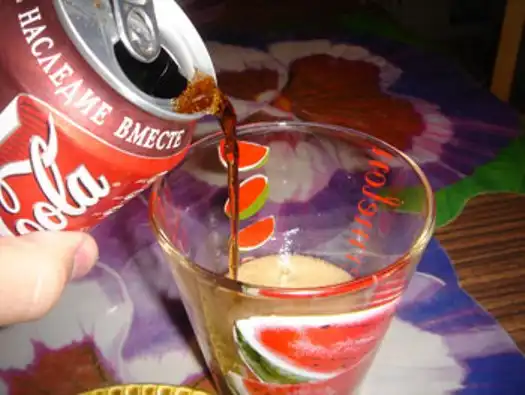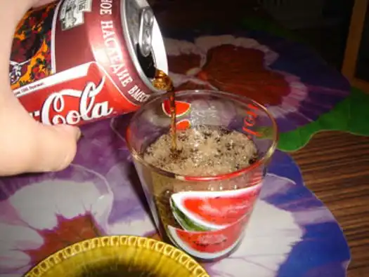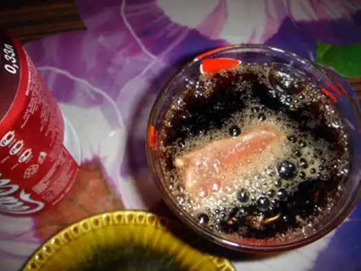 Для тех кто считает , что она безвредна предлагаю поставить такой опыт: бросьте в стакан колы кусочек сырого мяса и оставьте на ночь. Знаете, что будет утром? Мясо исчезнет! Кола полностью его растворит! Представьте, что происходит с тонкими стенками вашего желудка, когда кола туда попадает! А насчет достоинств колы могу сказать одно: она прекрасно чистит унитазы!