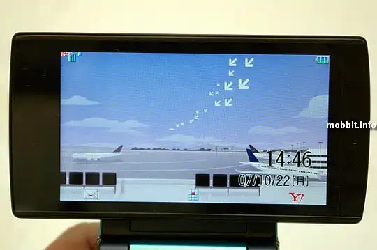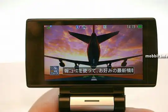 Это уже не первый телефон производства Sharp, рассчитанный на просмотр спутникового мобильного телевидения, но эта модель обещает самое лучше качество изображения по сравнению с тем, что было раньше. И все потому, что ее дисплей изготовлен на основе той же технологии, что и LCD-панели Aquos производства Sharp. По этой причине 3,2-дюймовый LCD-дисплей этого телефона имеет впечатляющее разрешение 480x854, контрастность 2000:1 и поддерживает 26 млн. цветов (а не 16 или еще меньше того, как большинство телефонов), а благодаря наличию специального стеклянного покрытия, даже яркий солнечный свет не помешает просмотру. Помимо выдающегося дисплея, Sharp SH-920 Aquos обладает 3,2-мегапиксельной камерой, SD/MMC-слотом, ИК-портом, поддерживает Bluetooth (A2DP), HSDPA. И пусть до мобильного телевидения в России еще далеко, но просмотр видео-то никто не отменял :)