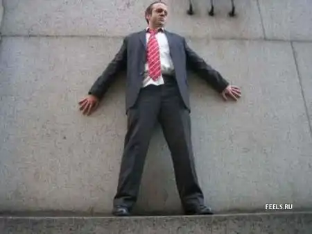 Чувак, видимо уволенный с работы или по каким-то другим причинам, залез на край здания с целью совершения самоубийства. :lol: