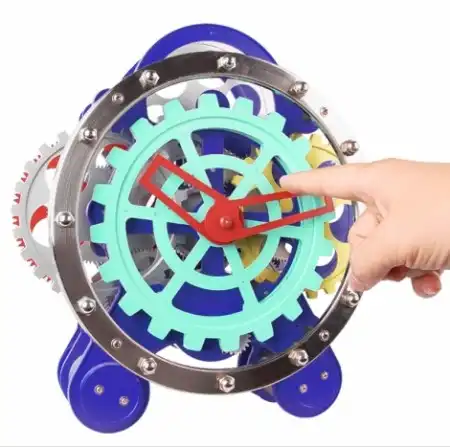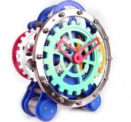 Эти настольные часы без корпуса и с разноцветными шестеренками — прекрасный подарок ребенку или гику.