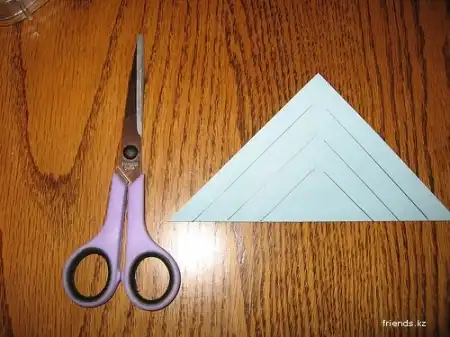 Затем сворачиваем, разрезаем, но не до конца.