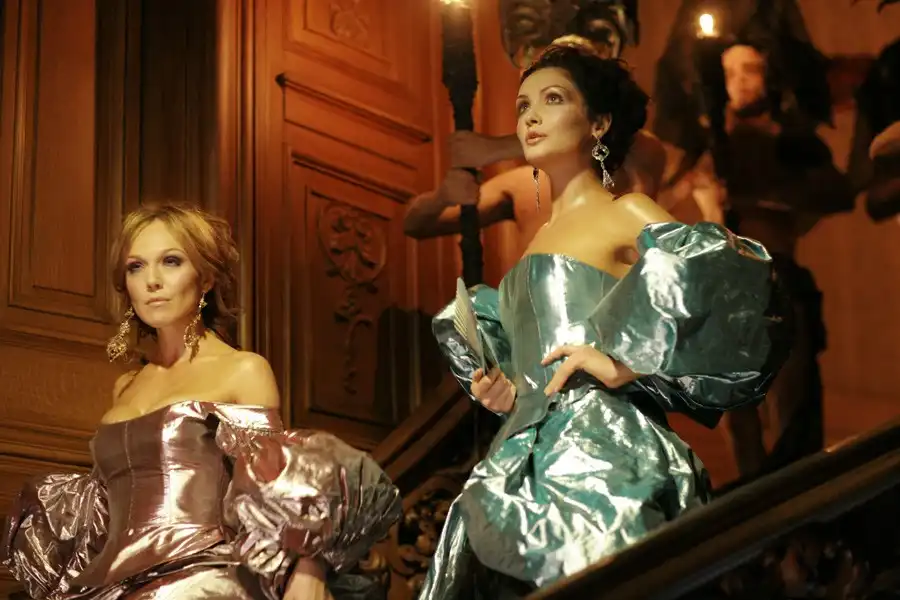 ...Мы видим Альбину и Меседу в воде. Они приближаются друг к другу будто для поцелуя... В самый кульминационный момент девушки взлетают над водой и запрокидывают головы назад в изящном прогибе.