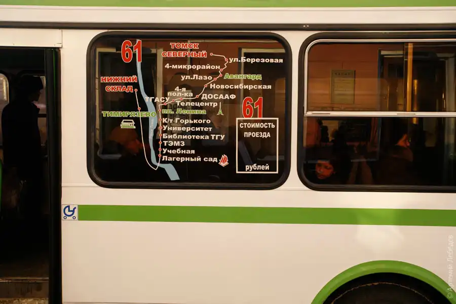 Даже на стекле автобуса тут нарисован маршрут с привязкой к топологии.