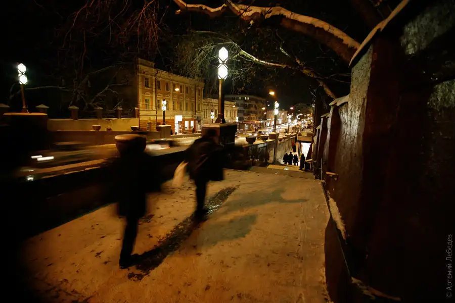 Для счастливчиков, избежавших провала, предусмотрено падение - все тротуары оборудованы забытыми уже в Москве ледяными дорожками.