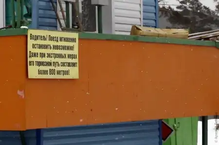 Даже на предупреждении, висящем на будке у железнодорожного переезда, чувствуется научный подход в составлении текста.