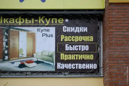 Реклама изготовителя шкафов-купе сообщает, что быстро скоропостижно скончалось в процессе создания плаката.