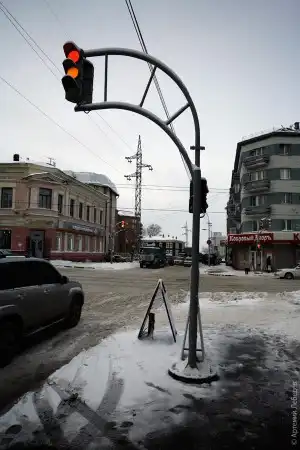 Отдельного внимания заслуживают томские светофоры. Например, такой - одна группа на весь перекресток: