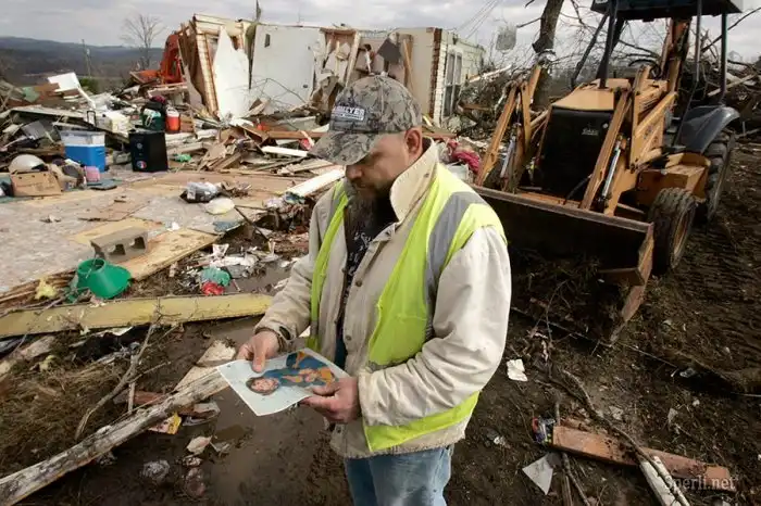 Городок Касталиан Спрингс, где жил Кайсон со своей мамой, почти полностью разрушен – губернатор штата Фил Бредесен сказал, что он никогда не видел ничего подобного: воронка торнадо охватила территорию в сорок километров, а штормовой ветер прошел шириной в 644 км. Всего в штатах Алабама, Арканзас, Кентукки и Теннеси погибли 55 человек. В этом печальном списке есть и имя Керри Стоуэлл – мамы Кайсона. К сожалению, службы предупреждения не всегда оперативно сообщали жителям о надвигающейся опасности, да и они сами не спешили в укрытия – привыкли к постоянной угрозе.