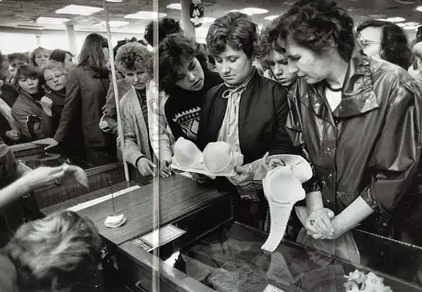 Sarah Leen, USA Женщины сравнивают цены в магазине одежды «Мода» в Москве. Это столпотворение привычно в Советском Союзе. Планирование советской централизованной экономики было не в состоянии обеспечить людей товарами народного потребления в достаточном количестве. Результат - дефицит, сопровождаемый безумным натиском всякий раз, когда желаемый продукт появляется в продаже. Другая проблема - почти византийская запутанность покупок в советском магазине; чтобы купить лифчик, например, покупатели встанут в очередь три раза - чтобы сделать выбор, заплатить за покупку и наконец получить товары.