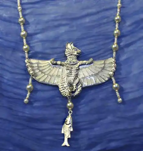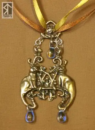 В данном случае, изображение крылатого рыбокиса надевается на шею, подобно знаку рыцарского ордена