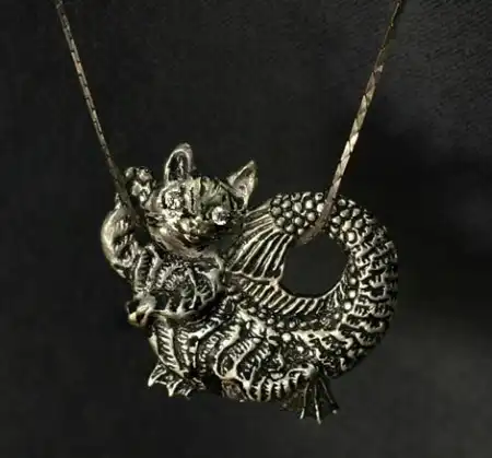 Кот с рыбьим хвостом и распахнутыми крыльями, подобно дракону, воплощает в себе мощь всех четырех стихий: земли и воздуха, воды и огня. Символизируя храбрость, волю и независимость, присущую этим зверям, крылатый рыбокис также обозначает свободу и полную уверенность в себе в любой стихии, способность естественным образом обращать на пользу своему делу силу любых обстоятельств. Несмотря на противоположность четырех стихий, он пребывает в гармонии со всеми ними.