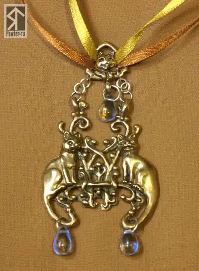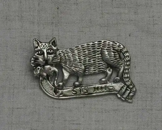 Данный оловянный значок был изготовлен в Англии в 1400-е годы. Он изображает кота, держащего во рту мышь. На ленте под котом латинская надпись «Vi sis mis», означающая «У меня есть мышь». Считается, что это изображение символизирует победу Добра над Злом. Но если подумать, такое толкование придется признать не совсем удачным. Мы предлагаем носить этот бедж как символ дихотомии добра и зла.