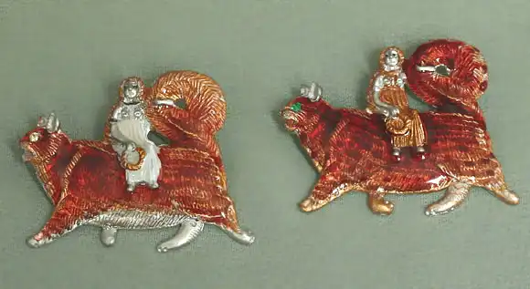Полагаем, что если этой брошью закалывать одежды иссиня-зеленого цвета, ассоциации со знаменитым произведением К. С. Петрова-Водкина будет не избежать; и те, кто сочтут ее слишком назойливой и неуместно пародийной, пусть избегают оного сочетания.
