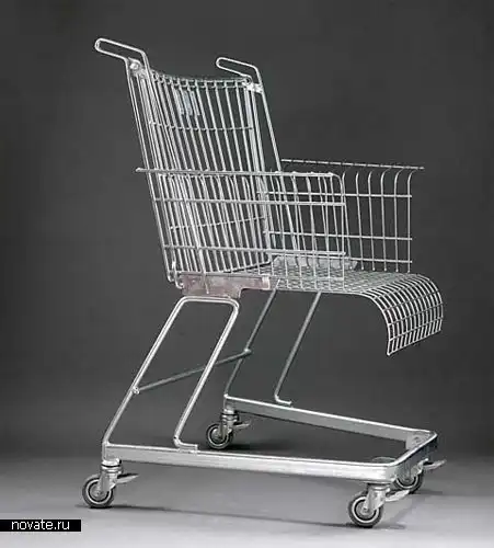 Однажды дизайнер Франк Шрайнер (Frank Schreiners) сходил в супермаркет и увидел, как заботливые родители катают своих детей в тележках. А потом увидел группу студентов, которые забавы ради катали друг друга в них же. И понял Франк – стул в виде тележки для покупок – вот что не хватает людям! Ну и сделал копию, более пригодную для сидения.