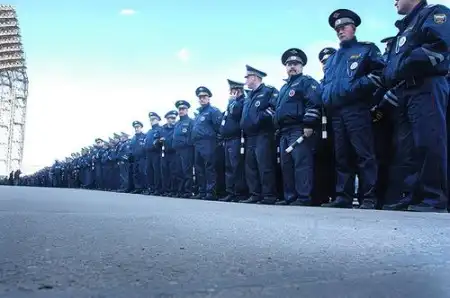 Полинявшие гаишники строятся в шеренги с соблюдением ПДД
