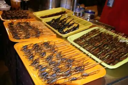 Наши азиатские друзья очень любят употребл*ть в пищу всё что движется.. Глядя на всё это выглядит не аппетитно! Но!!! Некоторые из этих угощений действительно вкусные! Честно сказать даже не ожидала!К примеру вот эти милые жучки на первой фотке!:)