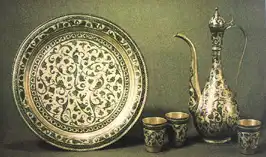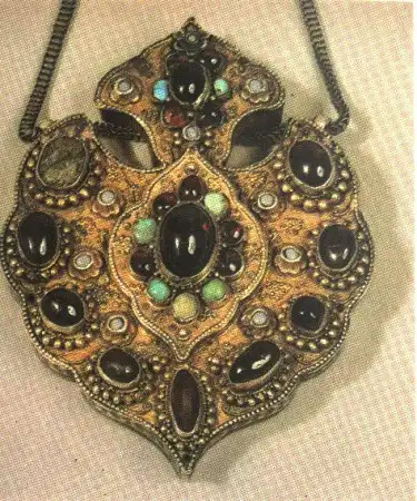 Богата была техника металлообработки: гравировка, чернение, филигрань (особенно накладная), насечка, зернь, применяли вставки из натуральных полудрагоценных камней, цветного стекла.