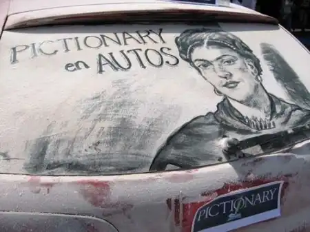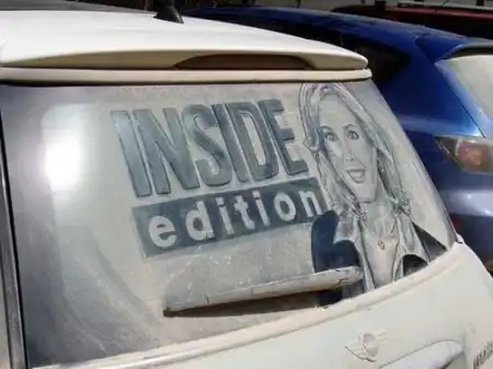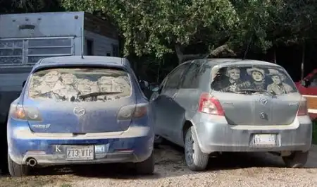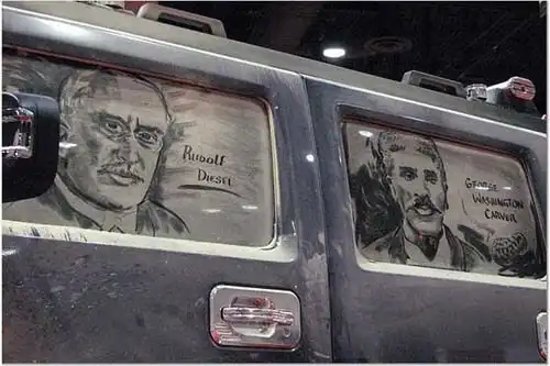 Художник находит или специально загрязняет автомобили и рисует на них свои замечательные картины.