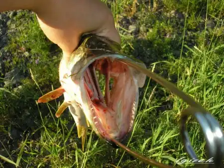 Ну вот собственно, то что поймала я.. щучка травянка, взяла вертушку уверенно, выважывать на берег таких лапушек труда обычно не составляет )) ( ее я отпустить не смогла :evil: унесла домой бабушке)