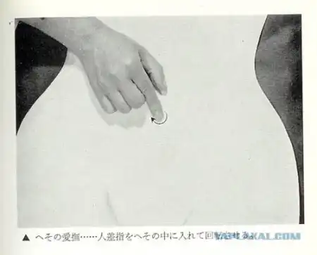 На следующей странице авторы решили перейти к теме петтинга. Здесь, как мы можем предположить, ведущую роль играет мужчина. Видимо для возбуждения сексуального жара в женщине, ему предлагается поковырять круговыми движениями у неё в пупке.