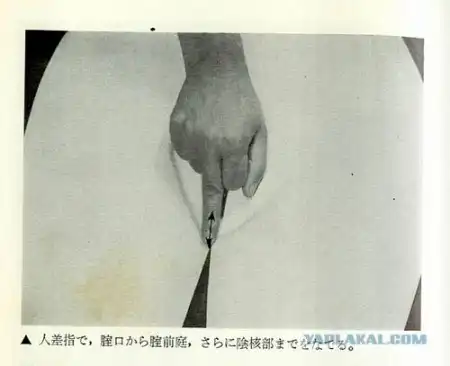 Теперь перейдём к упражнениям для женщин. Здесь им преподаётся первый урок обращения с мужским нефритовым поршнем (его изображает стеклянная колба). Мне кажется, что фотографии смотрелись бы несколько веселее, если бы у женщины на руках были одеты резиновые перчатки, но не будем отвлекаться.
