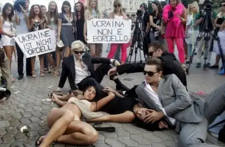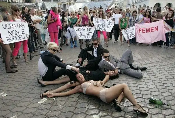 Украинские студентки и некоторые звезды шоу-бизнеса вышли на майдан в Киеве, чтобы устроить акцию протеста против секс-туризма