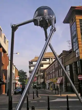 Скульптура из "Войны миров" установлена в Horsell Woking (Англия) в месте "первой посадки инопланетян". Жутковатая тренога высотой в 23 фута была создана Майклом Кондроном (Мichael Сondron) в 1998 году и с тех пор радует (или устрашает) публику.