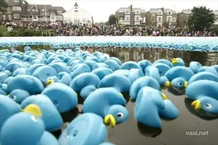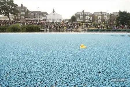 В Лондоне на реке Темза прошли «состязания» резиновых уток. Реку заполонили 250,000 тысяч резиновых уток синего цвета. Это количество превзошло количество уток в прошлом году, которое составило тогда 165 тысяч.Заплыв уток начался от дворца Hampton Court Palace. Целью столь необычного состязания было собрать деньги на благотворительность Национального общества защиты детей от жестокого обращения (NSPCC) и благотворительной британской организации Water Aid.