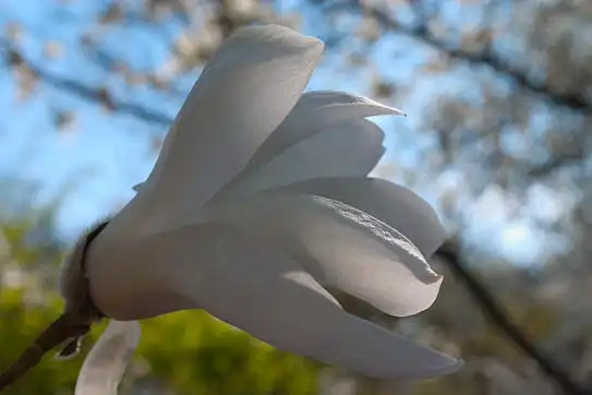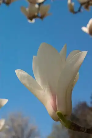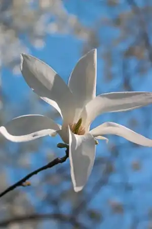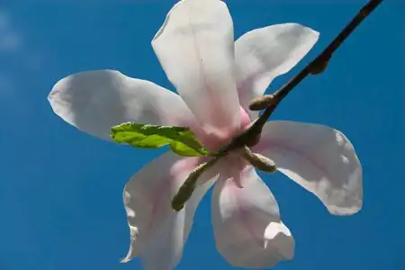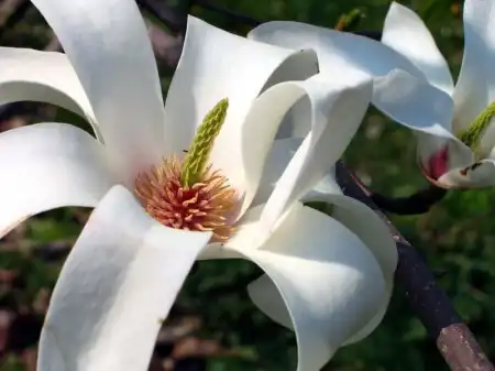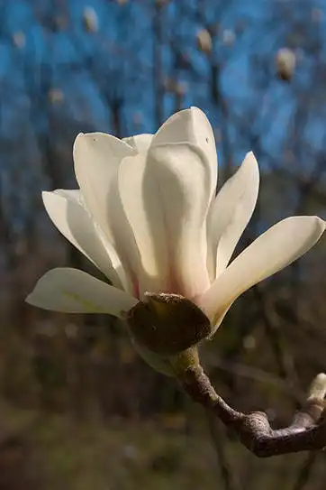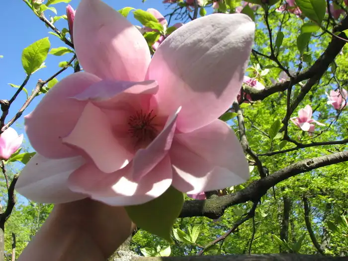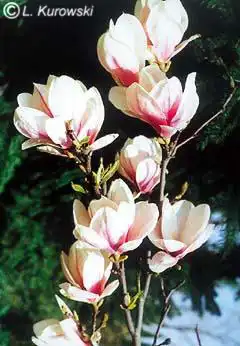 У американских магнолий цветы белые или кремовые. В Азии растут магнолии, цветы у которых розовые или красные, и зацветают они, когда на деревьях еще нет листьев. Одна из азиатских магнолий растет у нас на Кунашире, одном из островов Курильской гряды. Листья ее, сверху зеленые, а снизу голубовато-белые, похожие на почтовую бумагу, раньше использовались вместо почтовых открыток.