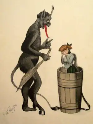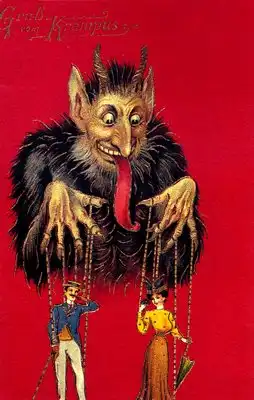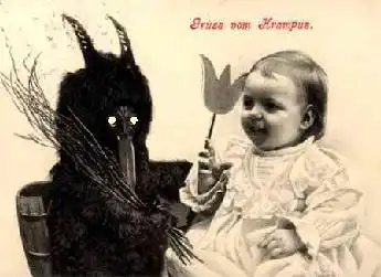 По народным верованиям, Святой Николай приносит подарки хорошим детям. Ну а Крампус вручает уголь и камни озорникам не желающим оплачивать свои кредиты и не слушающимся родителей. Тех мальчиков и девочек, которые вели себя особенно плохо, лохматое чудище наказывает розгами или даже уносит в свое логово в заплечном мешке.