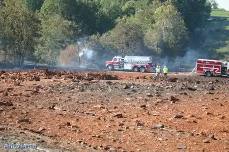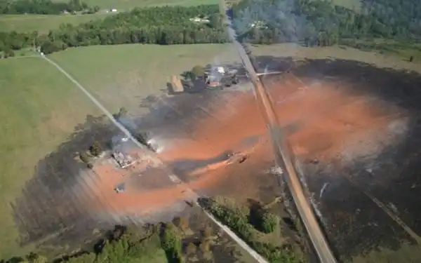 Один парень решил при помощи бурильной установки пробурить скважину, чтобы огурчики полить, там, помидорчики. И попал буром аккурат в газопровод. Результат - на фото. Что стало с парнем - не знаю.