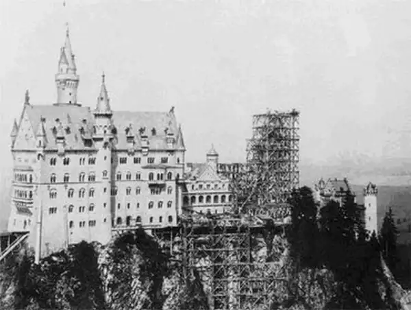 В 1886 г. постройка замка еще не была завершена. Работа остановилась на главной башне, донжоне. Семь недель спустя смерти короля Людвига II, Баварского замок был открыт для посещения публики.
