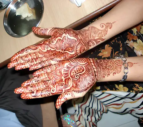 Иногда хна очень сильно прилипает к коже из-за сахара в последнем растворе, поэтому приходится подковыривать ее чем - то типа зубочистки .