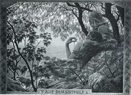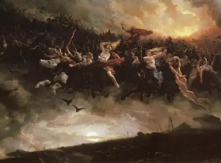 Уже в 1872 Peter Nikolai Arbo пишет полотно, которое называет "Асгардия" (центр.часть):