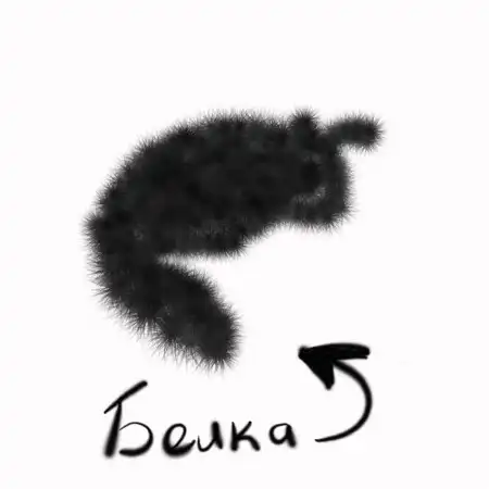 А это вторая попытка нарисовать белку. Уже лучше павда?...Хотя нет, на самом деле это просто клякса с глазами %(
