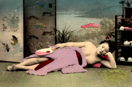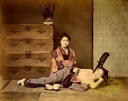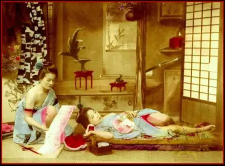 Маленьких девочек , в основном из бедных семей , в детстве продавали в чайные дома , которыми владели гейши . Там девочка находилась в услужении до 16 лет . За эти года , гейша обязательно должна была научиться играть на музыкальных инструментах , выучить немало поэзии , в мельчайших подробностях овладеть искусством чайной церемонии ну и конечно же , без природной красоты в гейши никого не брали ( судя по фота , тогда были другие идеалы красоты ) .Труд гейши в основном проходит в чайных домах и традиционных японских ресторанах, где гейша выступает хозяйкой вечеринки, развлекая гостей-мужчин. Гейша должна направлять беседу и способствовать веселому времяпрепровождению своих гостей, зачастую флиртуя с ними, но сохраняя при этом свое достоинство. Заработок гейши в чайном доме обычно составляет фиксированная почасовая плата за её труд. По достижении гейшей 18 лет , девушка имела право из своих клиентов принять какого-нибудь покровителя , будет ли она с ним спать и брать с него деньги - это её личное дело ... Но в основном все брали