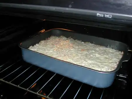 12) А Далее все это дело посыпаем сыром и ставим обратно в печь на 10 минут;