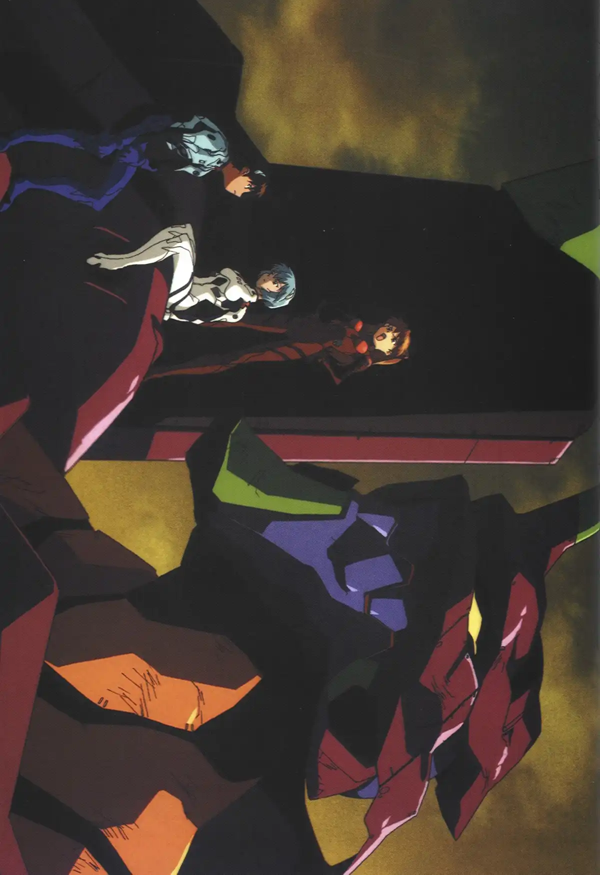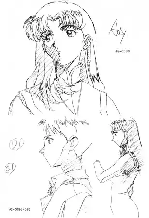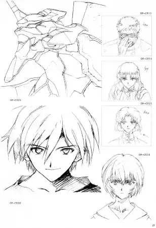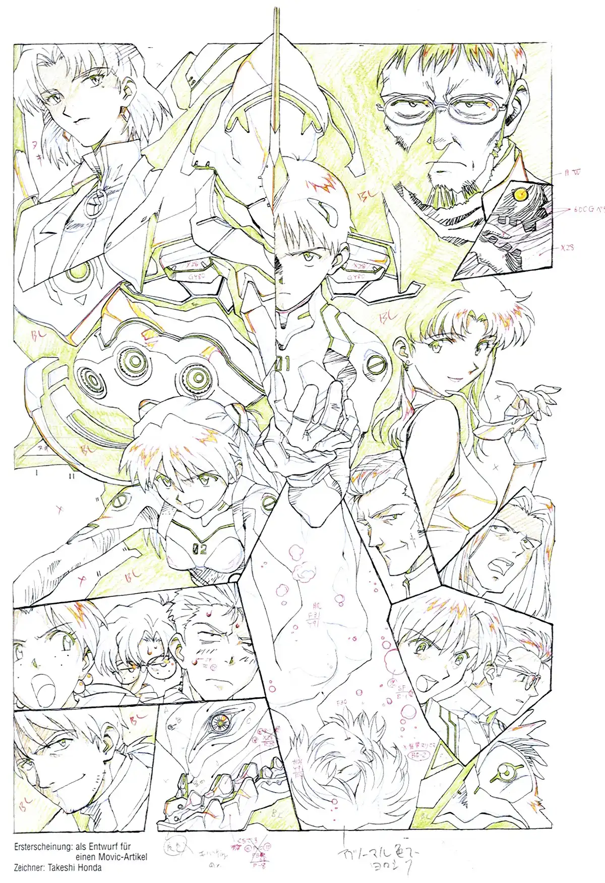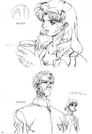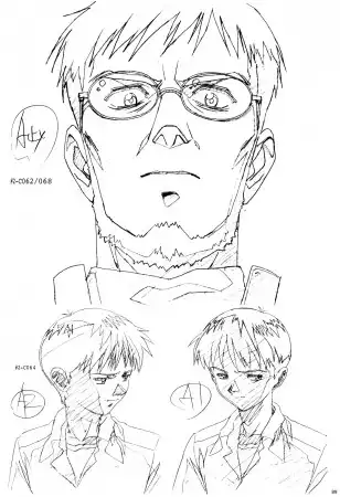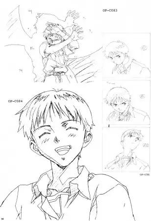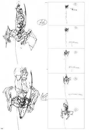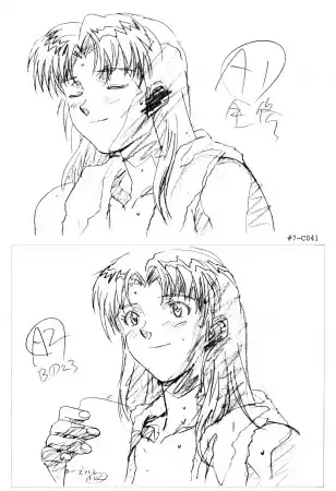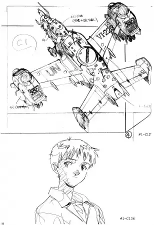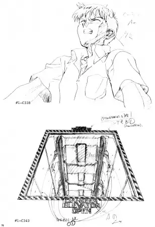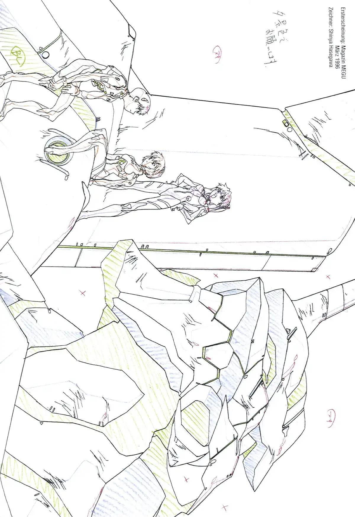 Сканы с рисунков NGE,на них прорисовка персонажей,раскадровка,работа с фоном.