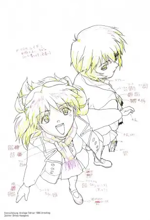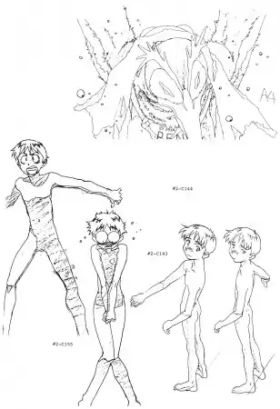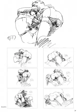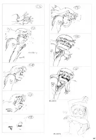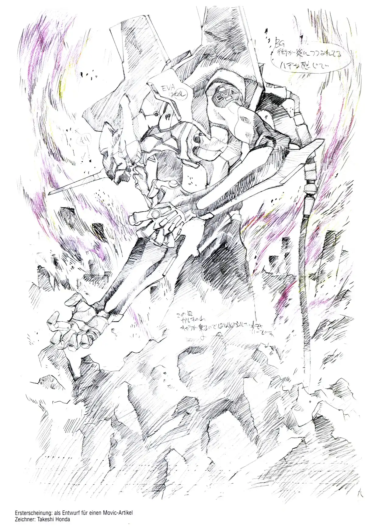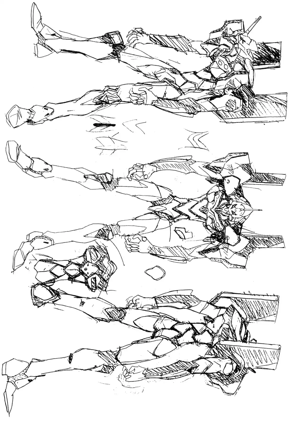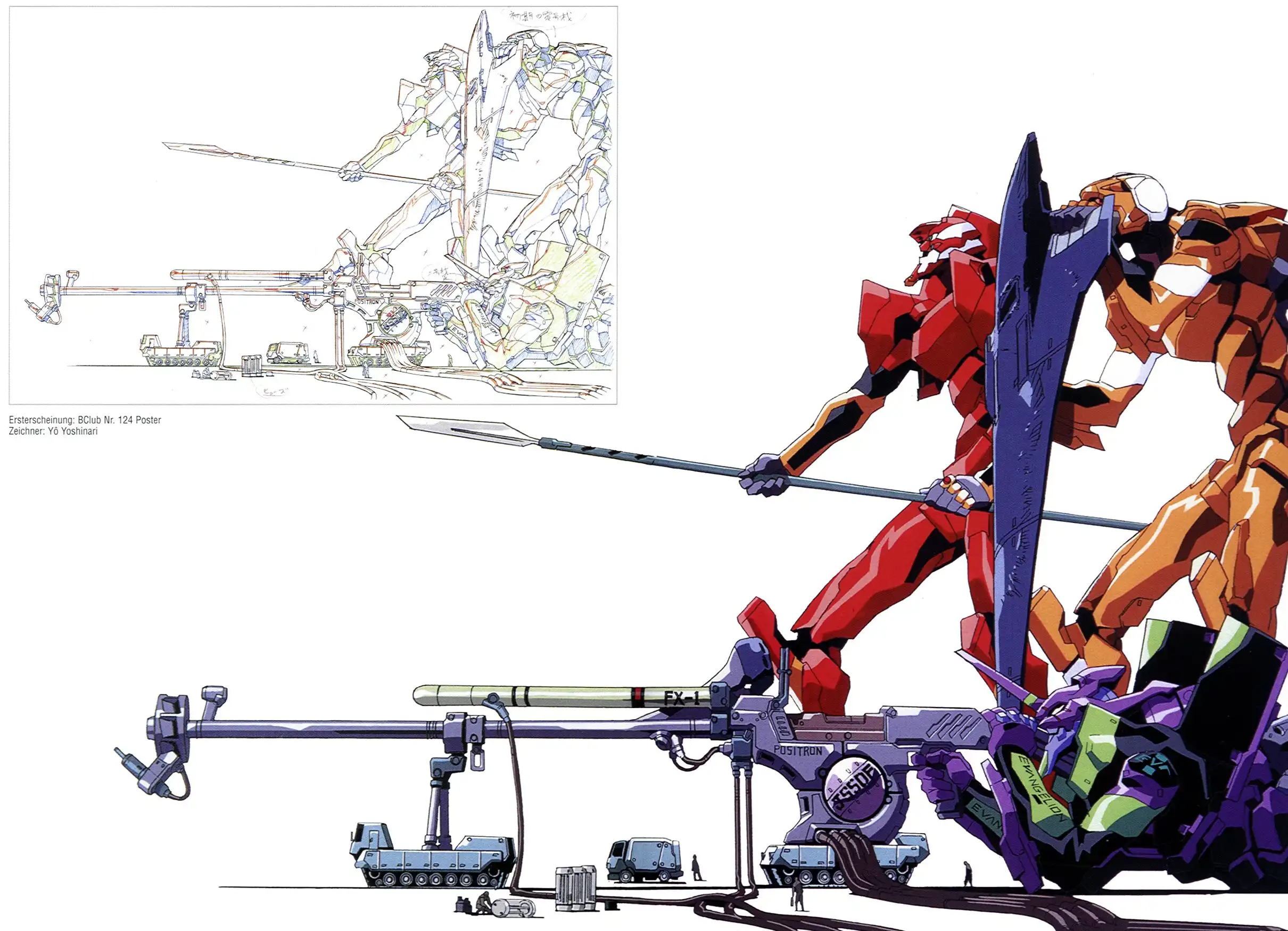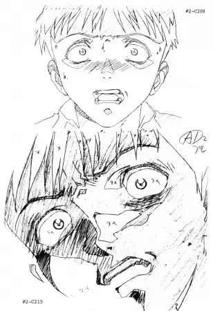 Сканы с рисунков NGE,на них прорисовка персонажей,раскадровка,работа с фоном.