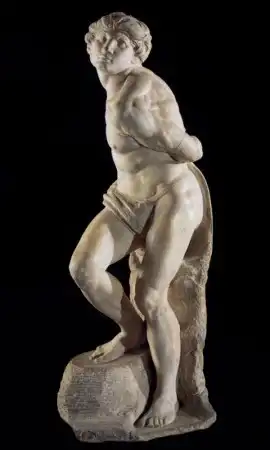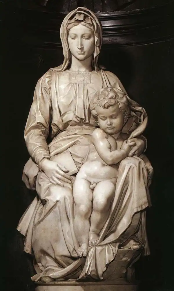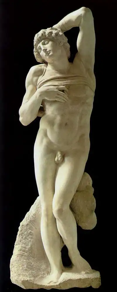 Микеланджело Буонарроти (Michelangelo Buonarroti; иначе Микеланьоло ди Лодовико ди Лионардо ди Буонаррото Симони) (1475-1564), итальянский скульптор, живописец, архитектор и поэт. В искусстве Микеланджело с огромной выразительной силой воплотились как глубоко человечные, полные героического пафоса идеалы Высокого Возрождения, так и трагическое ощущение кризиса гуманистического миропонимания, характерное для позднеренессансной эпохи. Микеланджело учился во Флоренции в мастерской Д.Гирландайо (1488-1489) и у скульптора Бертольдо ди Джованни (1489-1490), однако определяющее значение для творческого развития Микеланджело имело его знакомство с работами Джотто, Донателло, Мазаччо, Якопо делла Кверча, изучение памятников античной пластики. Уже в юношеских произведениях (рельефы “Мадонна у лестницы”, “Битва кентавров”, около 1490-1492, Каса Буонарроти, Флоренция) определились главные черты творчества скульптора - монументальность и пластическая мощь, внутренняя напряженность и драматизм образов, благоговение перед человеческой красотой. Работая в конце 1490-х годов в Риме, Микеланджело отдал дань увлечению античной скульптурой в статуе “Вакх” (1496-1497, Национальный музей, Флоренция); новое гуманистическое содержание, яркую убедительность образов он внес в каноническую схему группы “Оплакивание Христа” (около 1498, собор Св.Петра, Рим).