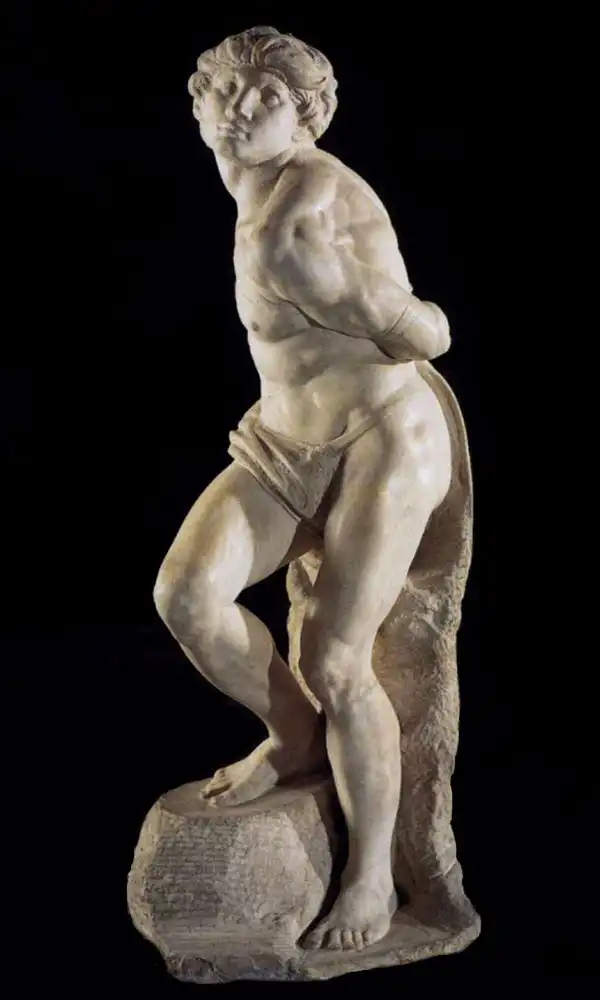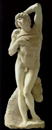 В 1501 году Микеланджело возвратился во Флоренцию, где создал колоссальную статую “Давид” (1501-1504, Галерея Академии, Флоренция), воплотившую героический порыв и гражданскую доблесть флорентийцев, сбросивших ярмо тирании Медичи. В 1505 папа Юлий II пригласил Микеланджело в Рим и поручил ему создание собственной гробницы. Для гробницы Юлия II, завершенной только в 1545 (церковь Сан-Пьетро ин Винколи в Риме), Микеланджело создал ряд статуй, в том числе наделенного могучей волей, титанической силой и темпераментом “Моисея” (1515-1516), исполненных трагизма “Умирающего раба” и “Восставшего раба” (1516, Лувр), а также 4 неоконченные фигуры рабов (1532-1534),в которых хорошо виден процесс работы скульптора, смело углубляющегося в каменный блок в одних местах и оставляющего другие места почти необработанными. В живописном цикле, выполненном Микеланджело на своде Сикстинской капеллы в Ватикане, художник создал грандиозную, торжественную, легко обозримую в целом и в деталях композицию, воспринимаемую как гимн физической и духовной красоте, как утверждение безграничных творческих возможностей Бога и созданного по его подобию человека.